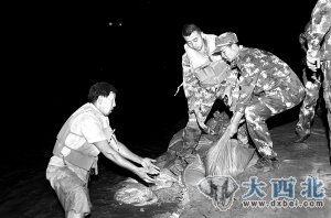 连日来,由于甘肃多地遭遇强降雨袭击,黄河水位甘肃段急剧上涨,为此刘家峡水库加大泄洪量,导致沿线多处黄河堤坝出现险情。26日,甘肃靖远约50公里河堤出现56处决堤险情。险情出现后,甘肃省消防总队立即启动应急救援机制,调动全省200余名官兵赶赴现场展开抢险救援。