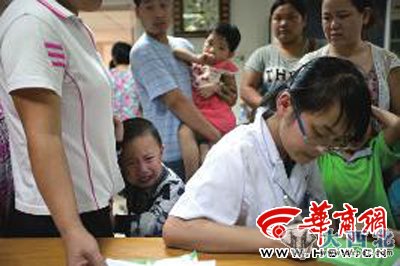 家长们纷纷议论说:“孩子平时都在幼儿园吃饭,今天下午3点在幼儿园吃的炒面,吃完后就出现不适了。”此时,40余名小孩已被安排输液,因为输液室已满,部分小孩只好在外面输液。一位家长不停地在楼道内踱步,而输液室内孩子的哭闹声让他显得更加焦急。记者初步统计,发现值班医生桌上孩子看病的收费单已有60余张。同时,在渭南市第一医院,还有16名小孩正在接受治疗。