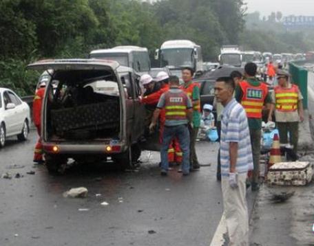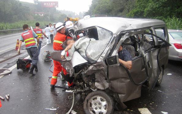 沪蓉高速南广段1714km+400m处,一辆载有12人的长安面包小客车,撞在一辆停靠在路边修理轮胎的重型大货车尾部,面包车上10人当场死亡,2名重伤者经抢救无效死亡。