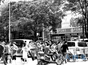 “在这个时间过马路一般是要排队的。到了高峰期,往往是上百人挤在这个缺口,很多时候,甚至拉货的摩托车也从这里往过挤,尽管这个过马路的口子很窄,但摩托车侧一点也能挤过去,可这就更加剧了人行通道的拥堵。有时候,过个马路就要等两、三分钟。”在路旁经营小卖部的刘先生说。
