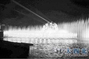 鑫报讯 一旁是漂亮的商品房小区,一旁是正在最后装修的新区行政中心大楼,完成注水的新区2号湖绿波荡漾,曾经飞沙走石的秦王川如今换了个模样。瞧,兰州新区2号湖滨面高喷的湖水在彩灯的映照下,摇曳着身姿,更显得美轮美奂。原来,在9月24日晚,兰州新区2号湖滨区内的西北最高立体彩色音乐喷泉进行了试喷,试喷持续20分钟。