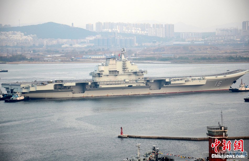 10月12日早上6时许,中国首艘航母辽宁舰离开大连船厂码头,开始了服役后的首次出海。