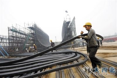 21日,河南平顶山,中国水电四局工作人员在南水北调中线沙河渡槽工程工区施工。蓝山 摄