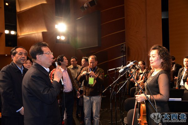 演出结束后,甘肃省政协主席冯健身接见演员并讲话。 贾笑云 摄