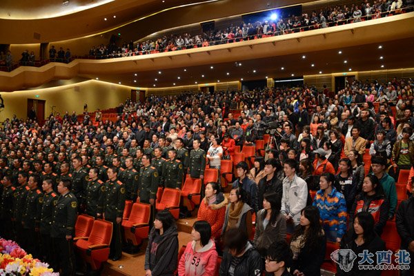 全体观众与所有演员齐声高唱《没有共产党就没有新中国》。 贾笑云 摄