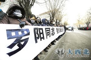 当日,沈阳飞机工业(集团)有限公司董事长、总经理罗阳同志追悼会在沈阳举行。清晨在罗阳曾经工作和生活过的地方——中航工业沈阳飞机设计研究所,广大职工群众为其送行。新华社供图