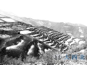 沿山脚前行了没多久,脚下的路就变成了斗折蛇行的盘山路。“那边是东沟、那边是干沟掌、前面就是双嘴山”李正华兴致勃勃地介绍着自己早已熟知的村情。这条修之不易的道路一边靠着大山,一边则是村民们开垦出来的田地,虽然都在一座山上,但有植被的地方,雪已经融化了,而半山腰的田地则被积雪覆盖着。层层叠叠,如画一般。