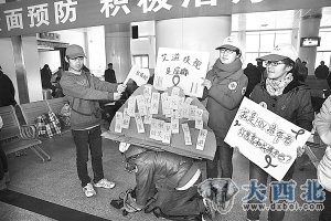 鑫报讯 “您好,请问您能和我握个手吗?能和我拥抱一下吗?”昨日,来自西北师大的艾滋病宣传志愿者扮演着艾滋病人向候车室的乘客们普及艾滋病知识。为迎接12月1日第25个“世界艾滋病日”。昨日,甘肃省红十字会联合兰州铁路局疾控中心在兰州火车站站前广场、候车室开展了针对流动人口的宣传活动。活动现场,大学生志愿者利用纸板制作了山、便利条、斧头等道具,以“歧视是座山,请你收回它”为主线,与现场参与者进行互动,直观地展示出艾滋病感染者和病人在日常生活中所受的歧视,营造出理解、尊重、平等的氛围,该活动引起了现场大众的争相参与和强烈反响。