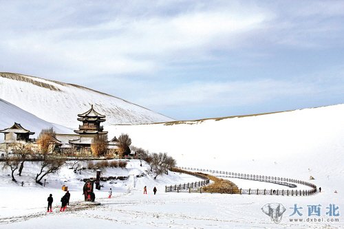 昨日,一场降雪使甘肃敦煌鸣沙山月牙泉银装素裹,分外美丽。新华社供图