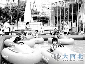 “我要坐碰碰船!”“我也要坐,下面有水!”由于正值三伏炎热天,美伦广场新增的儿童游乐设施中的“水上碰碰船”受到许多小朋友不约而同的喜爱。“这船是怎么坐的?”几位年轻的妈妈问现场的服务人员,服务人员说:“10元钱玩10分钟!”几位年轻妈妈纷纷拿钱买票,让自己的宝宝来到由充气模具制成的“湖水”里乘坐“水上碰碰船”玩。