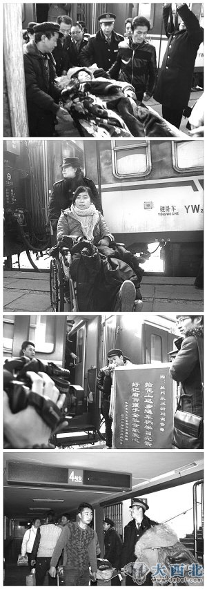鑫报讯 “你们给我们帮了大忙,真的太感谢兰州火车站、乌鲁木齐火车站,感激的话不知道该怎么说了”。昨日中午,罗登芳母女在两地爱心接力的传递下顺利抵兰。据了解,12月18日,甘肃采棉工因车祸被困新疆的消息经媒体报道后,兰州火车站表示将协调乌鲁木齐火车站,解决罗登芳母女回乡火车票,与此同时,社会各界对王成玉的爱心也在继续传递中。24日,母女俩回甘事宜经兰州和乌鲁木齐铁路局联动已得到妥善安排,昨日她们通过铁路方面开通的绿色通道并一路照顾顺利抵兰。