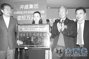 当日,开盛集团还将庆典仪式上燃放烟花、组织文艺晚会等项目省下的30万一次性捐给西北民族大学、甘肃农业大学、兰州理工大学三所大学共300名品学兼优的学生,奉献了他们的爱心。