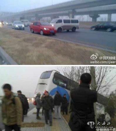北京复杂的天气给交通带来了十分不利的影响。据微博网友反映,由于北京雾霾不散,能见度差,加上路面相当滑,车辆易打滑,京承高速已发生数十起车祸,机场高速双向约有50辆车连环车祸。