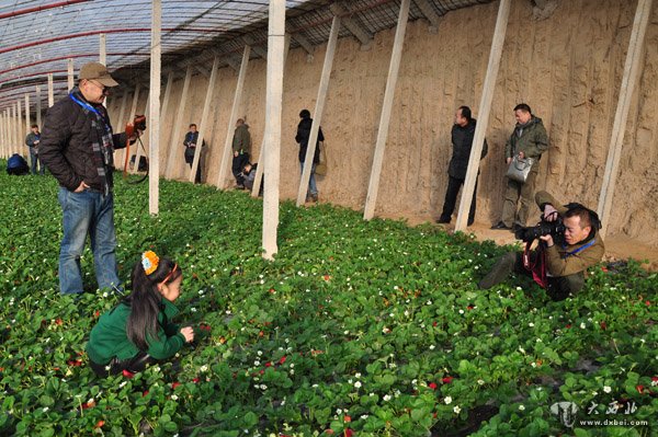 40多名来自兰州旅游界、摄影界、新闻界的朋友们在狗牙山草莓大棚进行摄影采风活动。 贾笑云 摄