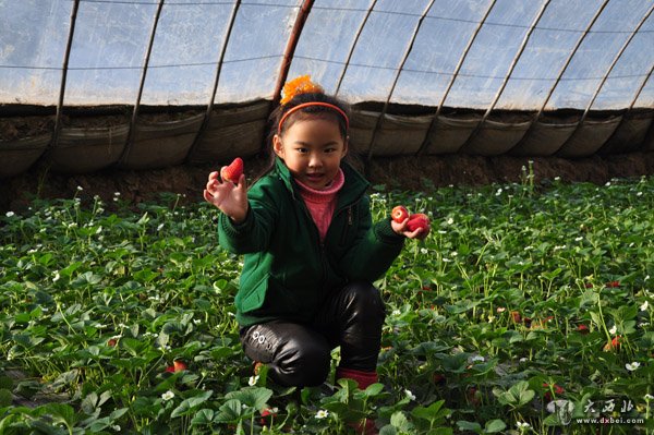 你瞧!我摘的草莓更大。 贾笑云 摄