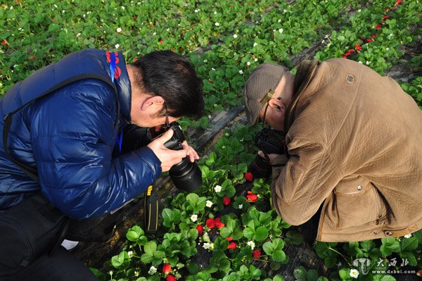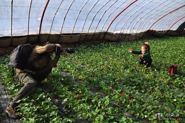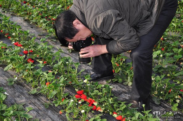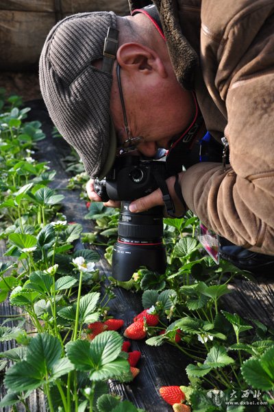 甘肃省摄影艺术家协会主席窦泽中在草莓大棚创作。 贾笑云 摄