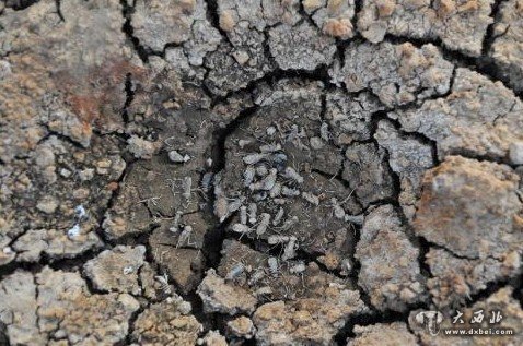 2月20日,云南省楚雄州永仁县一水库干涸,许多水生昆虫枯死在坝底。云南省楚雄彝族自治州大部分地区已经连续120多天未降雨,干旱情势严峻。据云南省水利厅称,受2012年降水偏少和近期持续晴热天气影响,云南部分地区出现干旱,目前全省已有60.4万人、33.5万头大牲畜出现不同程度饮水困难。这是云南自2009年以来连续第四年干旱。中新社发 任东 摄