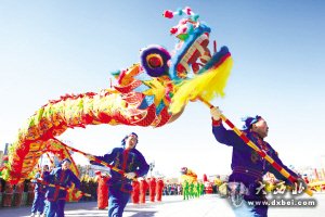昨日,甘肃省张掖市举行大型民间社火表演,吸引了近万名当地群众观看。精彩纷呈的表演汇集了舞龙、舞狮、秧歌、太平鼓等传统的元宵社火节目,还融入了现代歌舞和民族元素。汉族、裕固族、藏族、蒙古族群众身穿节日盛装,各展绝技。新华社供图 (责任编辑:鑫报)