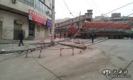 大西北网快讯(记者谈应霞) 鑫报2月21日通过图片新闻的方式报道了武威路上的这根“生命垂危”的电线杆,并希望能够引起相关部门的关注。时隔一周,这根电线杆于今日凌晨5时许被一拉香蕉的半挂车拉倒,致使移动的17个基站停止服务,武威路严重压车。目前,正在抢修中。