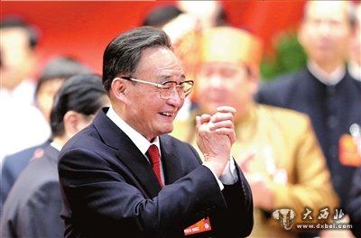昨天,大会开始前,吴邦国走上主席台时向大家致意。新华社发