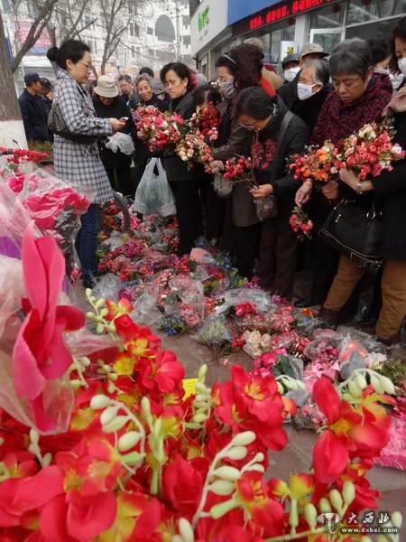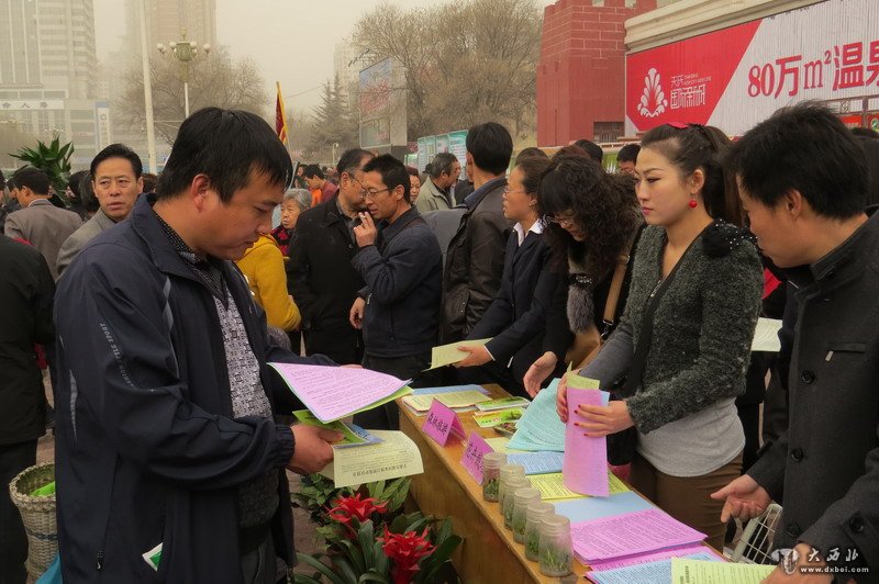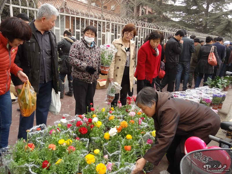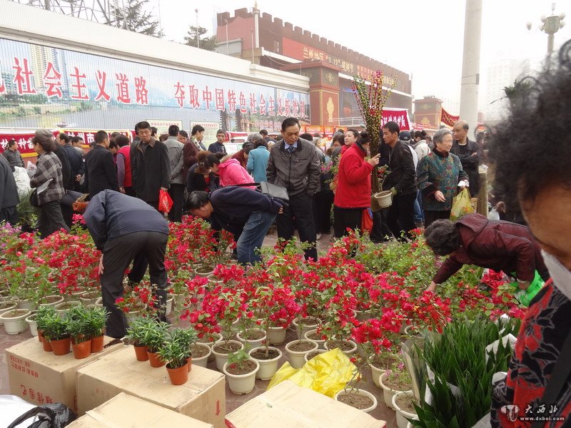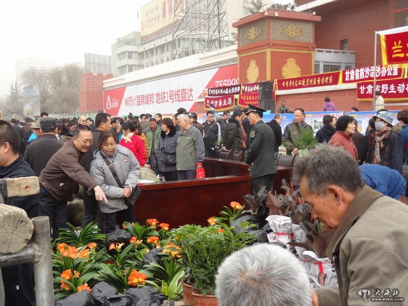 3月12日,兰州市沙尘重度污染,天气较冷,但中心广场人头攒动,植树节宣传活动火热进行,散发宣传材料,买花、市民以特有的方式迎接植树节的到来。