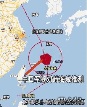 中日军舰对峙海域推测图