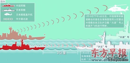 图解:中国军舰用火控雷达照射日舰。东方早报赵佳峰制图