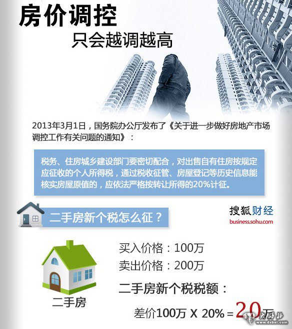 3月1日,国务院下发“国五条”细则,要求依法严格对个人转让住房所得征收20%个人所得税。