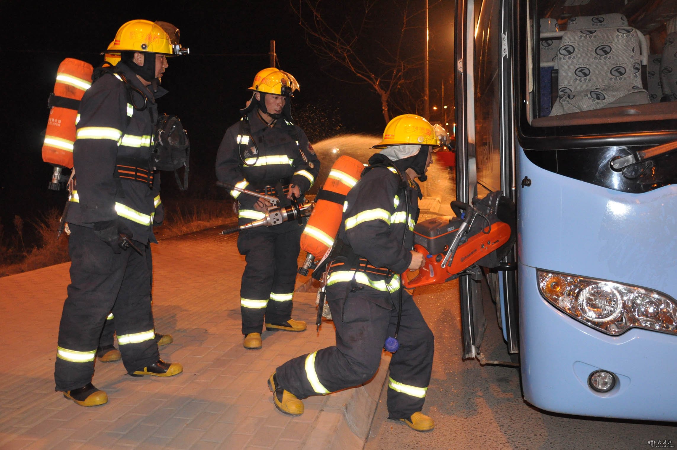 大西北网讯 3月16日晚,临夏市北滨河东路三易黄金水岸口岸对面发生“客运车辆交通事故,车内有人员被困,车厢内部有浓烟。”接到报警后,临夏消防支队指挥中心立即命令特勤中队出动1辆抢险救援车、2辆17吨水罐车、1辆8吨泡沫车和36名官兵赶往事故现场进行救援。这是当晚临夏消防部队开展的夜间道路交通事故无预案拉动演练的一幕。