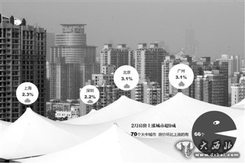 据3月18日国家统计局公布的数据,2月70 城市新房价格环比超9 成上涨,京沪穗涨幅居首,且均创历史新高。房价快速上涨,引起了业界的普遍担忧。