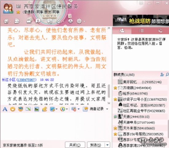 据了解,为强化宣传效果,社区通过张贴倡议书、社区QQ便民服务群上发布网络信息,书写黑板报等方式积极展开宣传。同时,社区还组织广大志愿者上门入户向居民群众进行文明祭祀知识宣传,希望广大居民在祭祀时,注意文明素质,用文明的方式寄托对先人的哀思。形式多样的宣传方式吸引了许多居民观看通知、参与讨论。网上有居民表示,焚烧纸钱的祭祀方式不仅污染环境,而且还容易引发火灾,他现在主要通过网上祭祀的方式表达对先祖的怀念之情,并提议大家用文明祭祀的方式进行,既环保又安全。