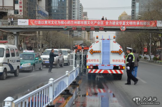 鑫报讯 4月1日上午,东岗交警大队在盘旋路十字启用智能清洗车清洗辖区交通护栏。该清洗车以配备的副发动机为动力,伸出一只“手臂”,两个高速旋转的清洗转轴垂直夹住道路中间的交通护栏,并可进行360度清洗。随着车身缓缓向前,身后的交通护栏焕然一新。