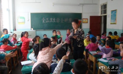 社区工作人员从学生们每天接触的一些零食娓娓讲起,让学生们了解什么是食品标签,如何查看食品日期。希望同学们养成良好的饮食习惯,不到校园周边无证摊贩处购买食品,少吃油炸、油煎食品。为了方便记忆,社区工作人员还教同学们朗诵食品安全童谣:“食品安全真重要,病从口入危害大,良好习惯要养成,食品挑选切注意。三无食品莫食用,有害物质在其中,小摊小贩莫相信,卫生更是谈不上,过期食品切注意,吃了危害大又大,变质食品切分清,中毒几率高又高。油炸腌制要少吃,健康危害正面临,饮料冷饮要节制,损害牙齿的健康。食品安全要牢记,现在就从我做起,我做起!”朗朗上口的童谣提高了学生们的学习积极性,营造出了浓厚的学习氛围。