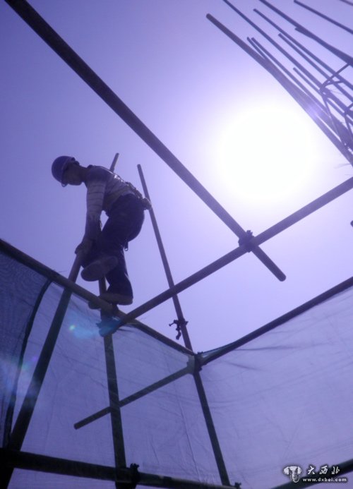 这些工人大多都来自外地的农村,年纪都在30岁左右。不论严寒酷暑,他们每天都要在钢管架上工作10小时。或许,在外人看来,这只是一份比较能挣钱的工作。但是,对于每一个钢管架上的工人来讲,那却是一份艰辛,每一份每一秒都面临着危险的工作。尽管这份工作很辛苦、很危险,他们所参与建造的楼房也与自己毫无关系,可他们依旧有自己的快乐和幸福,这不只是因为能够挣到钱。