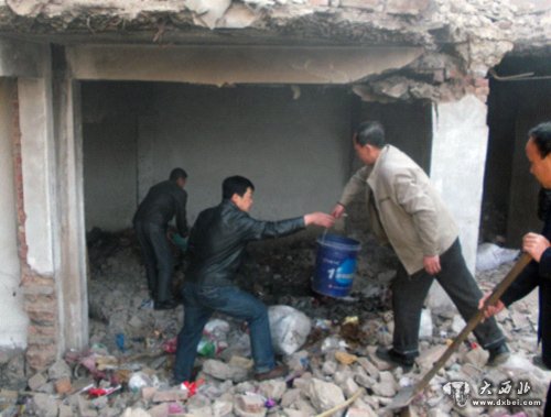 鑫报讯 昨日上午,靖远路街道西李家湾社区综治员在巡逻中发现,西李家湾57号对面已被拆迁的房内有浓烟冒出。随即,综治员将情况汇报社区并协同社区工作人员携带水桶、铁锨等赶至现场将火扑灭。