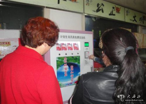 大西北网4月17日讯 据鑫报报道: 刷一下二代身份证,自助机上就会自动“吐出”免费的避孕药具。昨日,酒泉路街道中街子社区首台智能型避孕药具免费发放机“亮相”中街子菜市场。