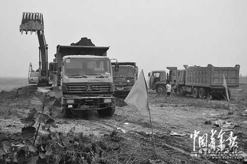今年3月29日上午,就在李名的挖掘机停下的地方,第3标段与第4标段的接合部,城关镇任堰村与台头乡韩营村的土地来了新的挖湖者。任堰村的十多名村民,像去年10月一样聚在一起,阻挡施工,但却遭遇了与上次截然不同的结局。