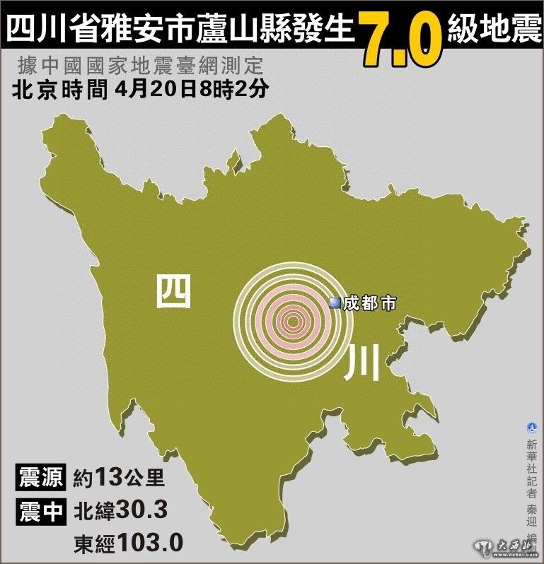 图为4月20日四川省雅安市芦山县发生7.0级地震图表。(新华社记者秦迎编制)