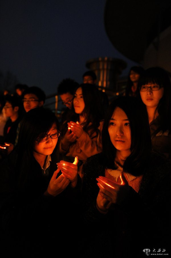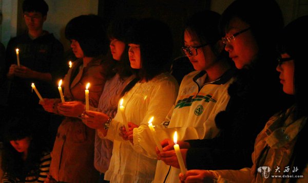 4月20日,吉林大学的学生们手捧着蜡烛,为地震灾区人民祈福。