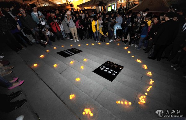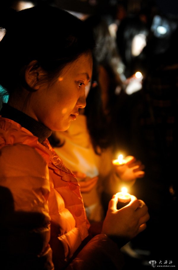 4月20日晚,浙江农林大学的学生在校园里手持蜡烛,为芦山地震灾区同胞祈福