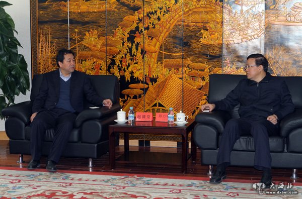 甘肃盛达集团董事长(总裁)赵满堂(左)与中国长城公司总裁郑万春亲切友好会谈。