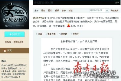 大西北网4月25日讯 据南方日报报道:历时40天,上个月一度轰动网络的杭州“3·15杀人抛尸案”告破。