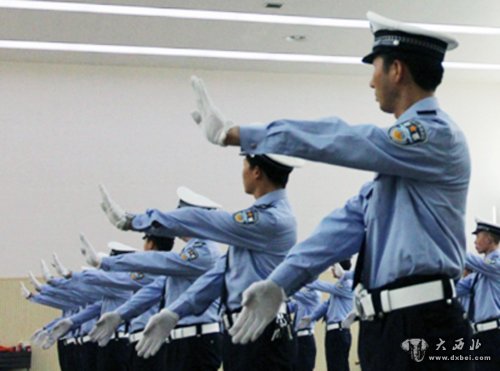 东岗交警大队为了更有力地保障道路交通安全通畅,树立良好的形象,特别从全队中抽出30名青年民警、协警,在他们日常工作之外,每天抽出时间开展了为期一个月的集中训练。从走路到着装、从站姿到手势,详细而又严格地进行了苦训。