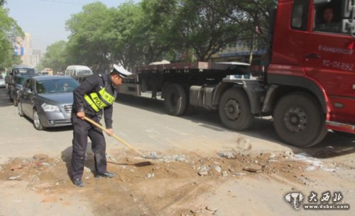 鑫报讯 4月27日早晨,东岗东路拱星墩加油站附近因施工挖段道路后回填不好,致使道路严重堵车,东岗东路几近“瘫痪”。为此,东岗交警果断决定拆除施工护栏,并回填一条1米长的沟壑后,才使得道路畅通。