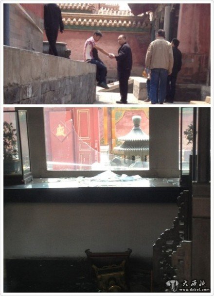大西北网5月5日讯 据京华时报报道:昨天上午,故宫翊坤宫,一男性参观者徒手击碎正殿原状展室一块窗玻璃,致临窗陈设的文物跌落受损。有网友称,该男子可能因拍照受阻,一怒之下砸坏玻璃。目前警方已介入调查。