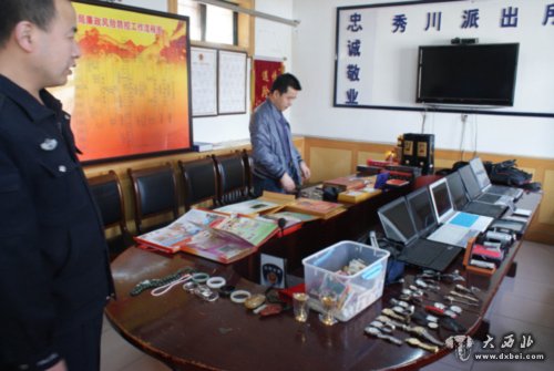 大西北网5月7日讯 据鑫报报道: 昨日,兰州市公安局七里河分局传出捷报:该局刑侦三中队攻坚克难,连续作战,打掉一个利用技术开锁流窜川、青、陕、甘四省入室盗窃财物的犯罪团伙。抓获团伙成员4名,审破盗窃案件40余起。涉案价值60余万元。嫌疑人仅在兰州指认现场27起,警方已查证落实23起,并追回被盗现金、钻戒、玉镯、黄金首饰、笔记本电脑、摄像机、照相机、手表、纪念币、邮票、高档烟酒等价值20余万元的财物。