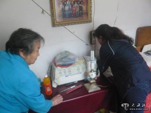 鑫报讯 家住中山路892号201室的居民屈奶奶今年已经87岁高龄,虽然儿孙满堂,但由于儿子在外地打工,也没什么亲戚走动,所以老人总是一个人孤孤单单的。有事她就会给社区打电话寻求帮助。昨日,恰巧家里的电灯坏了,屈奶奶便给桥门社区打电话,希望社区的工作人员来看看。社区接到电话后便很快来到老人的家中并为老人及时修好了灯,屈奶奶非常高兴,连声称赞社区工作人员。