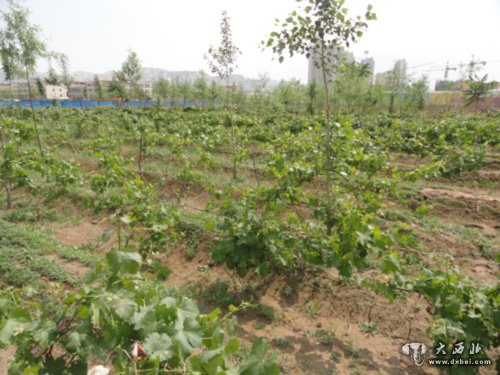 昨日上午,记者在甘肃联合大学南校区看到,在校区东区空旷的绿化区内,1亩左右的葡萄园已是一片绿色葱茏,连片的葡萄架子中间,零星地分布着一株株高立挺拔的树木,夏风吹过,葡叶泛波,树木摇曳,一片清纯的绿色。