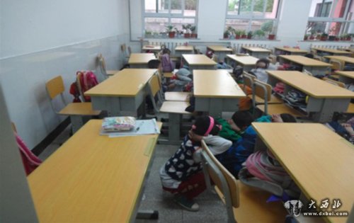 5月8日15时40分,随着警报声的一声响起,地震应急演练在段家滩小学的校园拉开了序幕。只见上课的教师立即停止授课,立即告知“同学们,地震来了,不要慌。”并指挥学生迅速抱头、闭眼,躲在各自的课桌旁,尽量卷曲身体,降低身体重心,并尽可能用书包保护头部。最后一排靠里4个同学面向墙,蹲在墙角处。一分钟后,学生在老师的率领下有秩序从楼梯向下迅速撤离到操场上。到达目的地,各班级老师马上清点人数逐一进行汇报后,城关区地震局的朱局长及段家滩小学校长对演练活动进行简要总结,并向师生们发放了人民防空教育宣传教材等宣传资料,最后宣布段家滩小学防地震逃生演练活动结束,请各班有秩序地回到教室。