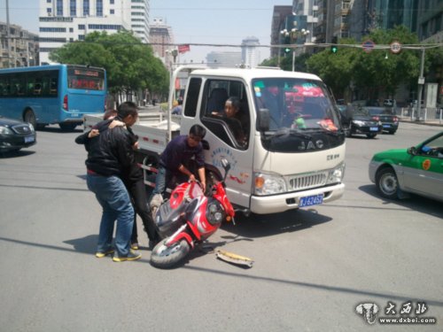 鑫报讯 昨日中午12时许,一辆车号为甘J.624XX的白色货车在中山林十字向兰州二十七中方向拐弯时,撞上一辆摩托车,摩托车上的年轻女乘客受伤,被送到附近医院救治。
